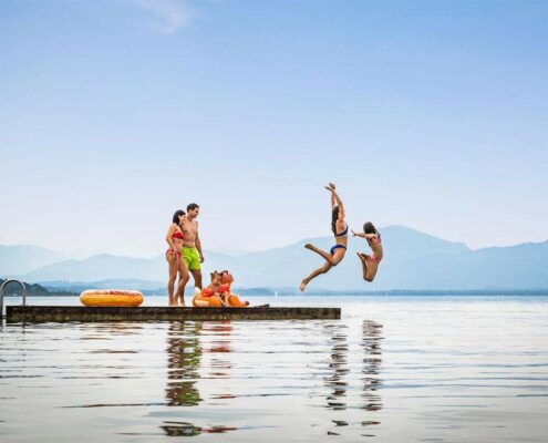 Zum Baden im Sommer und zum Genießen der schönen Sommertage lädt der ruhig gelegene Wössner See mit einem hervorragenden Restaurant ein. Das bayerische Meer, der Chiemsee, ist in 15 Minuten mit dem Auto erreichbar.