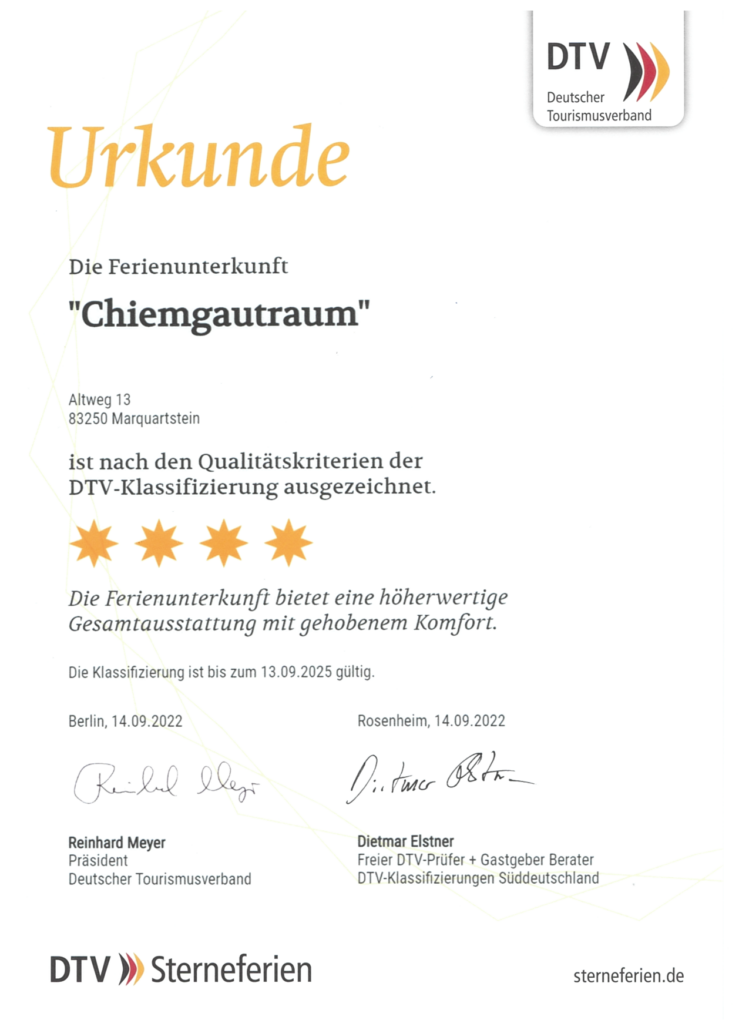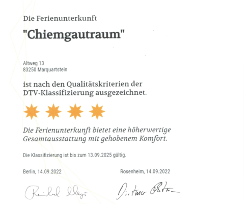 Zertifizierte 4-Sterne-Ferienwohnung in ruhiger Lage im 2. Stock; eigener Parkplatz (gratis), Ortsteil Piesenhausen (Marquartstein)
