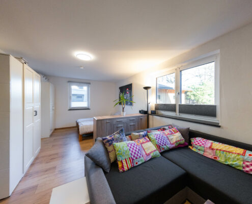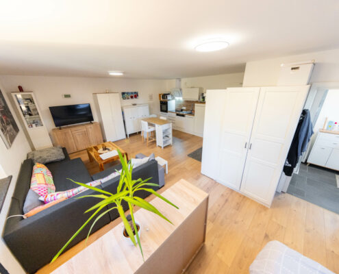 Die Ferienwohnung Siebenschläfer bietet Platz für bis zu 4 Gäste, ist ausgestattet mit einen Doppelbett, vollausgestatete Küche, Ess- und Wohnbereich, einen gemütlichen Schlafsofa, einen Badezimmer mit Dusche und WC. Im Keller steht Ihnen eine Waschmaschinie zur Verfügung. Fahrräder, Ski, Kinderwagen, usw. können Sie in einem absperrbaren Raum einstellen. Der Garten mit einer Gartenlouch und gepflegter Liegewiese lädt zum erholen, Grillen und entspannen ein.