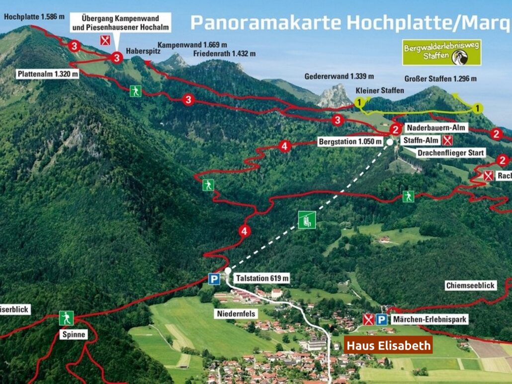 Das Haus Elisabeth liegt am Fusse der Hochplatte im schönen Achental. Es ergeben sich vielseitige Wandermöglichkeiten.