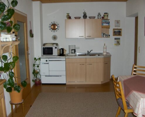 Die Ferienwohnung für 2-4 Personen und das Doppzimmer – beide mit Terrasse – liegen ruhig und zentrumsnah mit herrlichem Bergblick. Ein gemütlicher Aufenthaltsraum mit Kaffeeküche, Sat-TV und Mikrowelle stehen für das Doppelzimmer zur Verfügung. Das Nichtraucherhaus verfügt über WLAN. Ins Zentrum zu Bäckerei und Lebensmittelmarkt sind es nur 150 bzw. 400 Meter.