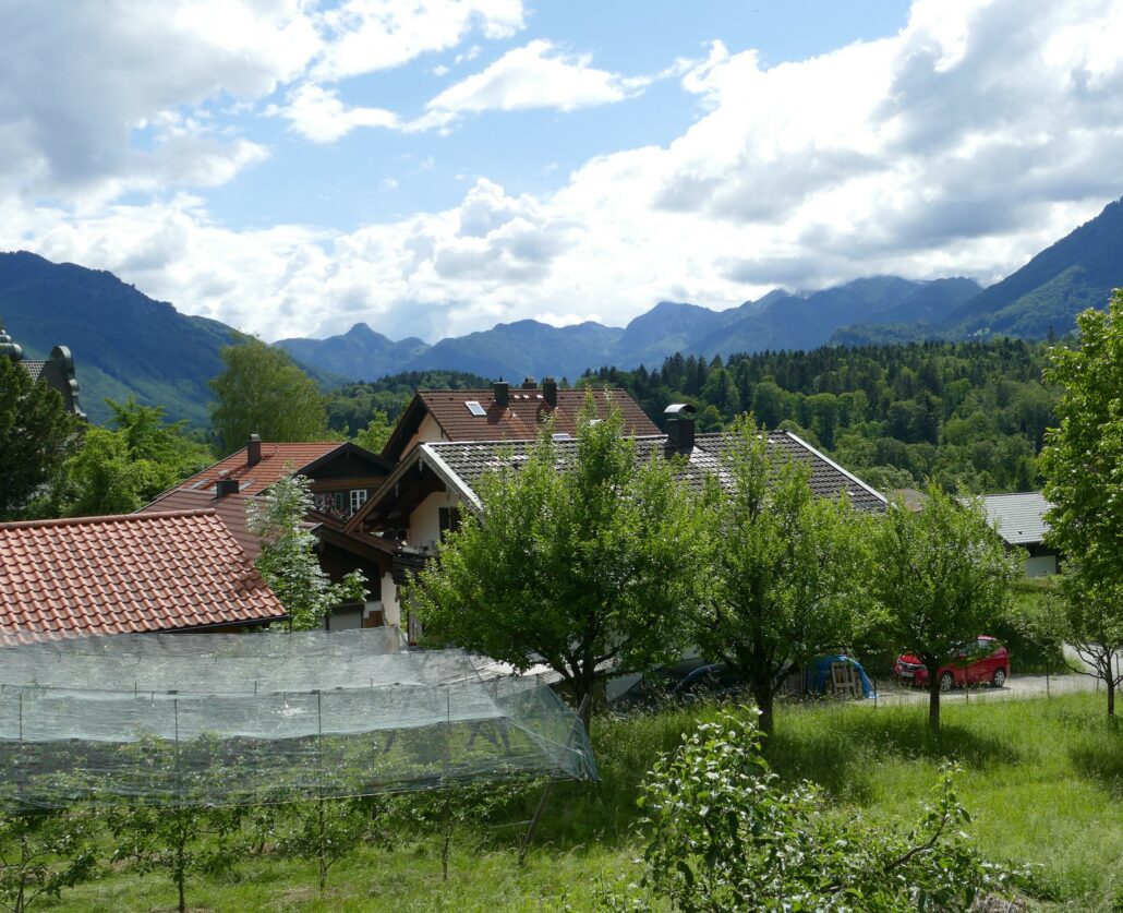 Wir wohnen unterhalb der Burg, etwas erhöht mit Blick auf den Ort und zu den Chiemgauer Alpen. Ideal als Ausgangspunkt für schöne Wanderungen, z. B. Hochgern, Schnappenkirche, Jochbergalm, Richard – Strauß – Höhenweg nach Unterwössen und vieles mehr.