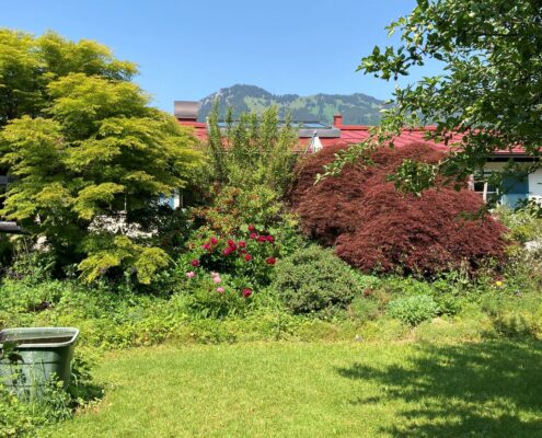 Sehr großzügig geschnittenes Haus von 1975, das zwischen 2021 und 2023 komplett saniert, modernisiert und technisch auf den neuesten Stand gebracht wurde. Das Haus wird von einem romantischen Garten mit Rasenfläche zum Spielen und Ausruhen eingerahmt. Es steht in einer sehr ruhigen Siedlung am Waldrand, am Fuße des Balsberg.
