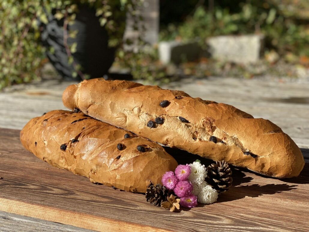 Der Allerheiligen-Wecken ist ein traditionelles bayerisches Gebäck, das oft in ländlichen Regionen wie dem Achental zu Allerheiligen am 1. November gebacken wird. Es handelt sich um Hefegebäck, oft mit Rosinen gebacken und mit Hagelzucker bestreut.