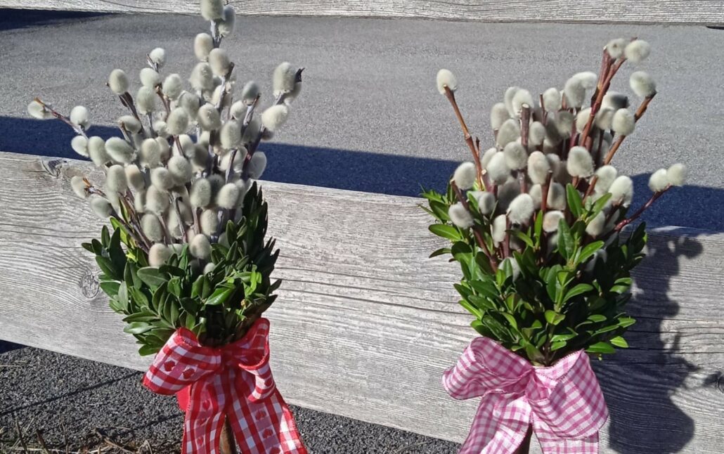 Möglichst viele Palmbuschen werden auf einer Stange zur Kirche und nach der Messe zu Verwandten und Bekannten getragen – nach von Generation zu Generation vererbten Anleitungen werden Weidenzweige mit Buchs, Stechpalme, Wacholder und Mistel zu Büscheln gebunden und je nach Region mit bunten Bändern verziert.